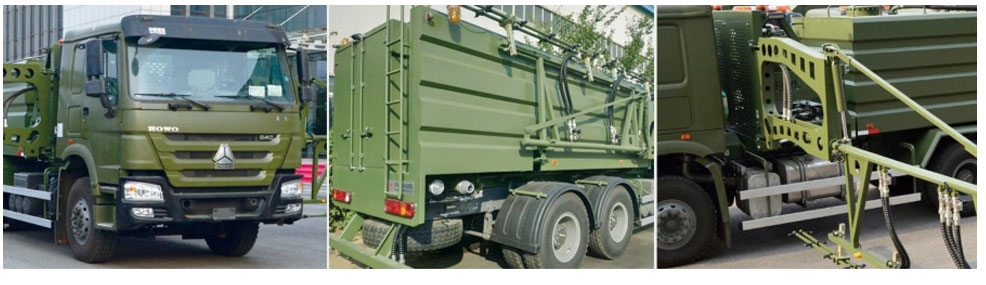 1.动力充沛,采用军选汽车底盘及340马力发动机,取力器输出功率可达150kW/1900rpm,为喷洒系统提供充足动力